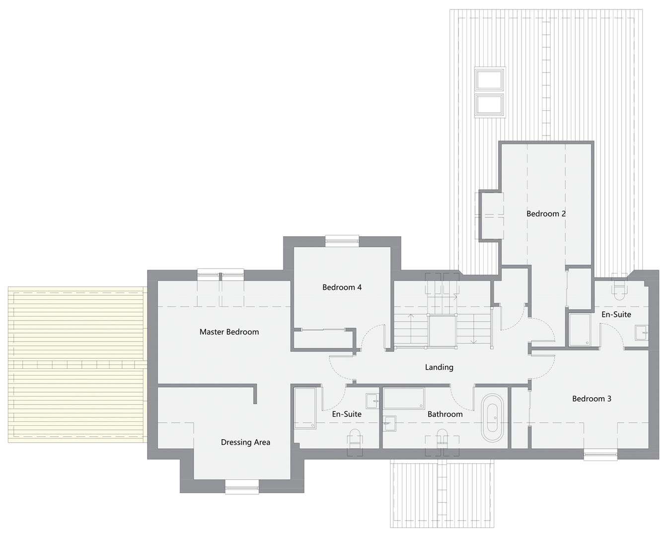 Upstairs, the master suite is nothing short of indulgent. With a vaulted ceiling, spacious dressing room, and a sleek, contemporary en-suite, it offers a private sanctuary away from the bustle of family life. Three additional generously sized bedrooms are also located on the first floor, one of which benefits from its own en-suite—ideal for older children or overnight guests. A large family bathroom serves the remaining bedrooms with style and convenience.