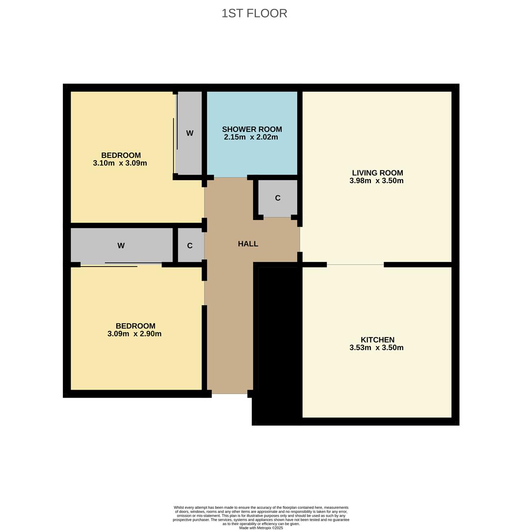The generously proportioned living room is filled with natural light thanks to large front-facing windows, creating a warm and airy atmosphere—perfect for both relaxing and entertaining. There is a modern fitted kitchen, complete with ample wall and base units, contemporary worktops, and space for a breakfast table or small dining area. This is a practical and stylish space ideal for cooking and casual dining. The property features two well-sized double bedrooms, both of which benefit from built-in wardrobes, offering excellent storage without compromising floor space. The shower room has been recently upgraded and features a sleek, modern design with quality fixtures and fittings, including a walk-in shower, vanity unit, and heated towel rail.