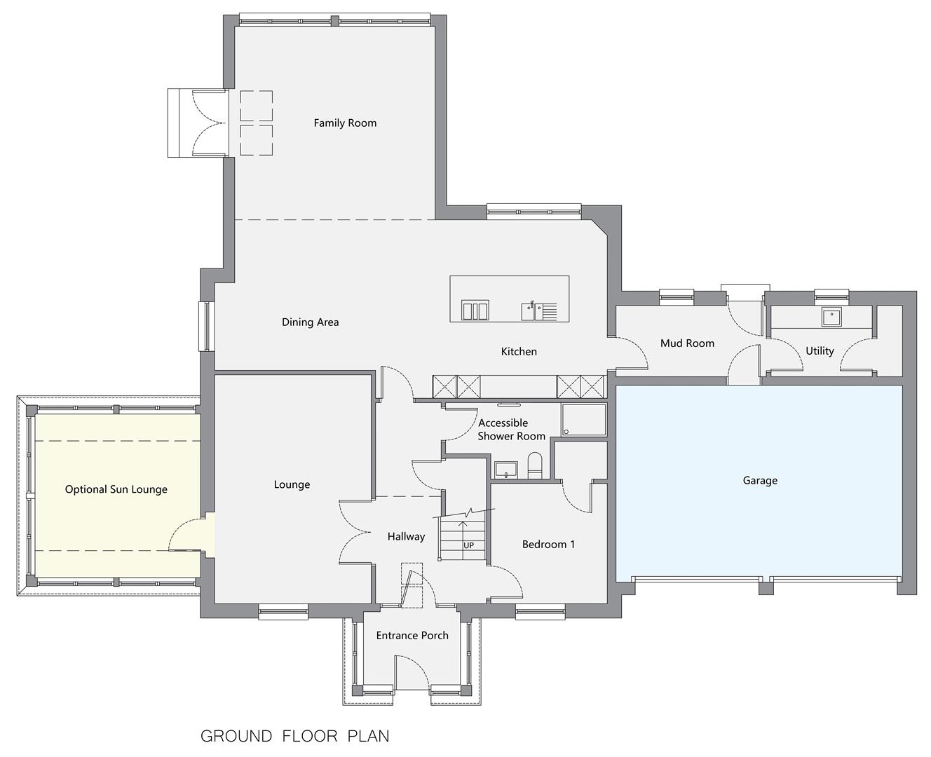 Upstairs, the luxurious master bedroom continues the theme of grandeur with its vaulted ceiling and benefits from a spacious walk-in wardrobe and a private en-suite bathroom. Three further well-proportioned bedrooms are located on the first floor, positioned near a large, stylish family bathroom, offering comfort and convenience for growing families A second ensuite bathroom, can be added upstairs if desired.
