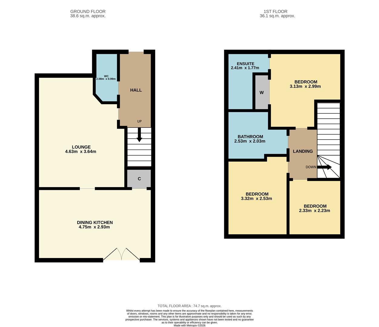 Upstairs, there are three adequately sized bedrooms.