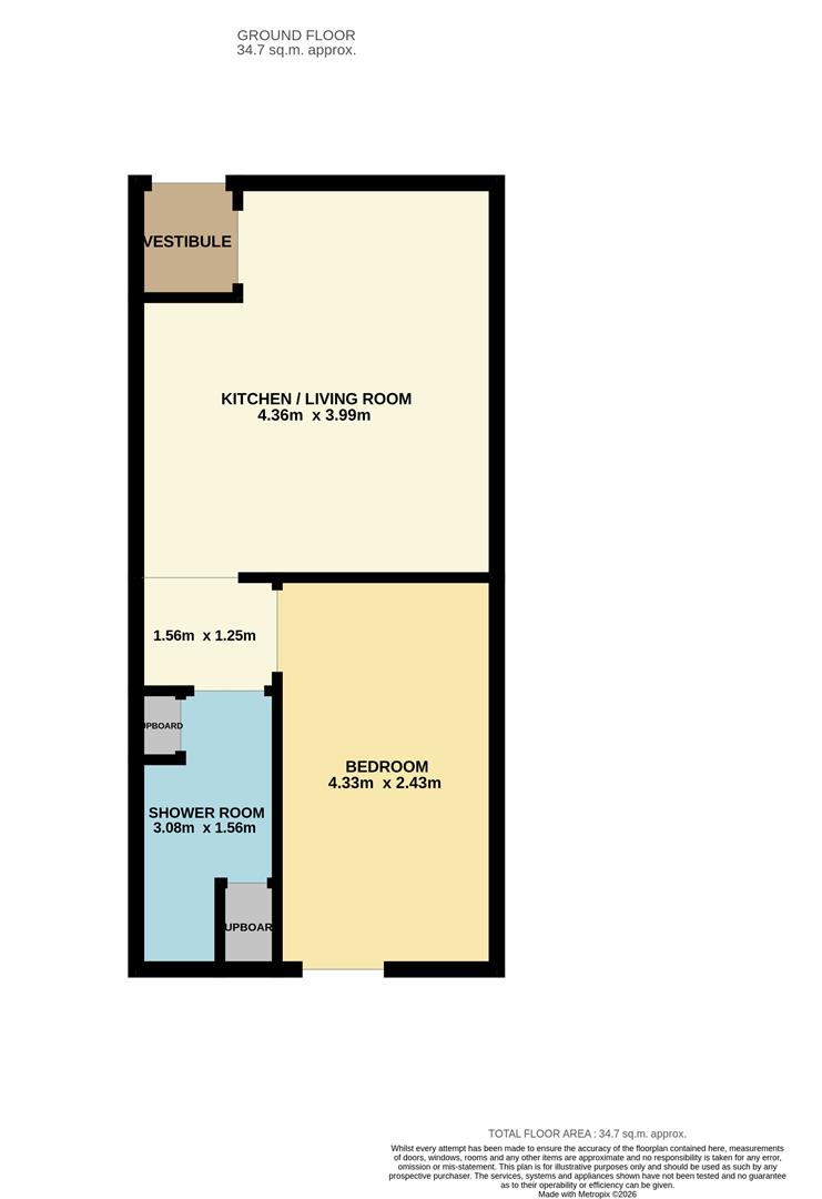 The apartment further benefits from a shower room complete with convenient built-in storage, ensuring a clutter-free space. A generously sized double bedroom offers excellent accommodation and ample room for free-standing furniture.