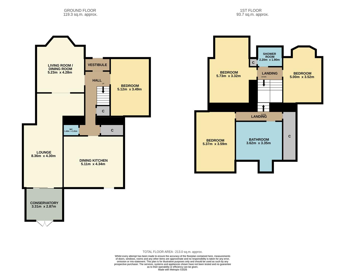 This well-presented property offers generous and versatile accommodation throughout. The bright and spacious living room flows seamlessly into a light-filled conservatory, creating a comfortable and inviting space perfect for both relaxing and entertaining. The ground floor further benefits from a spacious breakfasting/dining kitchen, ideal for modern family living, along with a beautifully bright south-facing dining room. A convenient ground floor W/C adds to the home’s practicality.